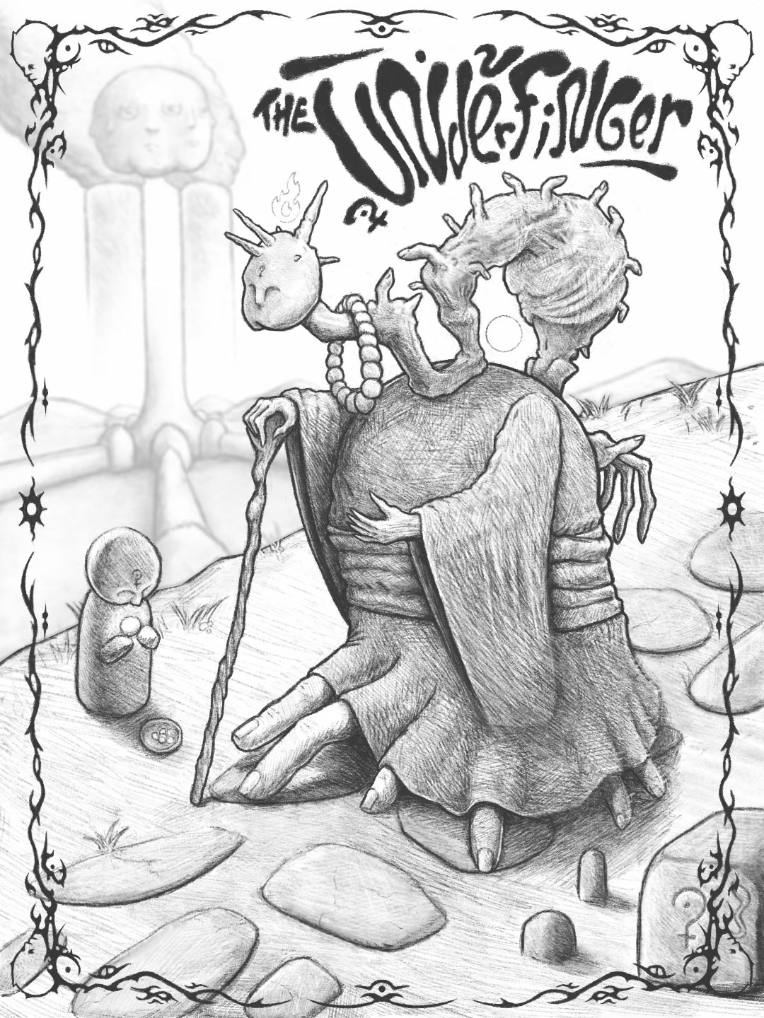 This caracter represent a creature with finger everywhere on its body. some people in this world belive that its touch can heal even death when others think that his touch could kill anyone in an insant. -